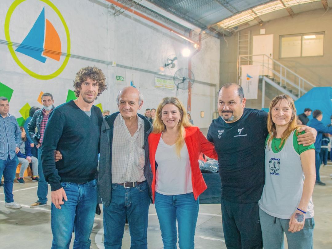 En las instalaciones de la Escuela de Boxeo ‘Ezequiel Terrible Gómez’ de la Sociedad de Fomento ‘La Unión’ del barrio Aviación, el Intendente Juan Andreotti; la Secretaria de Desarrollo Social, Educación y Medio Ambiente, Eva Andreotti; y el Concejal Carlos Bergandi, entregaron guantes, sogas, vendas, protectores y otros elementos deportivos.