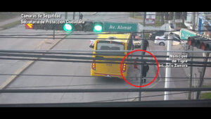 Las cámaras del distrito captaron el momento en el que un grupo de jóvenes se acercaba a la parada de colectivos de Ruta 9 y Chilavert para robarles a cinco personas. Tras cometer el ilícito, huyeron a bordo de un autobús, pero fueron interceptados por las autoridades a los pocos metros.