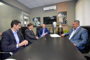 En el marco del programa Mi Identidad, Mi Derecho, el gobernador de la provincia de Buenos Aires, Axel Kicillof, se reunió esta tarde en Ezeiza con el presidente de la Asociación del Fútbol Argentino (AFA), Claudio Tapia, con quien suscribió un convenio para facilitar la inscripción y la regularización de la documentación de chicos y chicas que integran los clubes afiliados a la organización. Estuvieron presentes el jefe de Gabinete, Martín Insaurralde, y el director provincial del Registro de las Personas, Mariano Ríos Ordoñez.