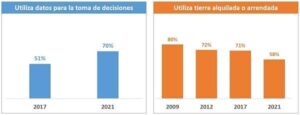 El nuevo modelo de negocios por el que hoy apuestan tiene un factor clave de éxito: la obtención, la administración y el uso de los datos. El 73% de los productores tienen maquinaria que recoge datos, y el 70% los usa para la toma de decisiones, se trata de un incremento de más de 20 puntos porcentuales respecto a los resultados de la anterior edición de este trabajo.