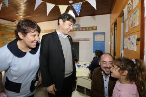 Durante la jornada, Kicillof recorrió los avances de las obras de ampliación y refacción del Jardín de Infantes 901 “25 de Mayo”, junto al jefe de Gabinete de la Dirección General de Cultura y Educación, Pablo Urquiza. En el marco del programa Escuelas a la Obra, se invierten allí $18 millones para reparar los sanitarios, construir un nuevo bloque de baños y edificar un galpón de almacenamiento, en beneficio de 252 niños y niñas de 2 a 5 años. Las autoridades visitaron también las obras de construcción de la Casa de la Provincia.