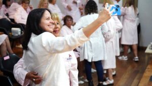 Las Damas Rosadas son un equipo de más de 300 voluntarias que brindan acompañamiento, contención y confianza a los pacientes y las familias durante una estadía hospitalaria. Trabajan con referentes locales del sector de la salud pública para poder llegar a los grupos sociales más vulnerables y de mayor riesgo sanitario.