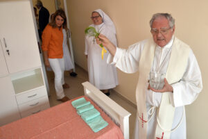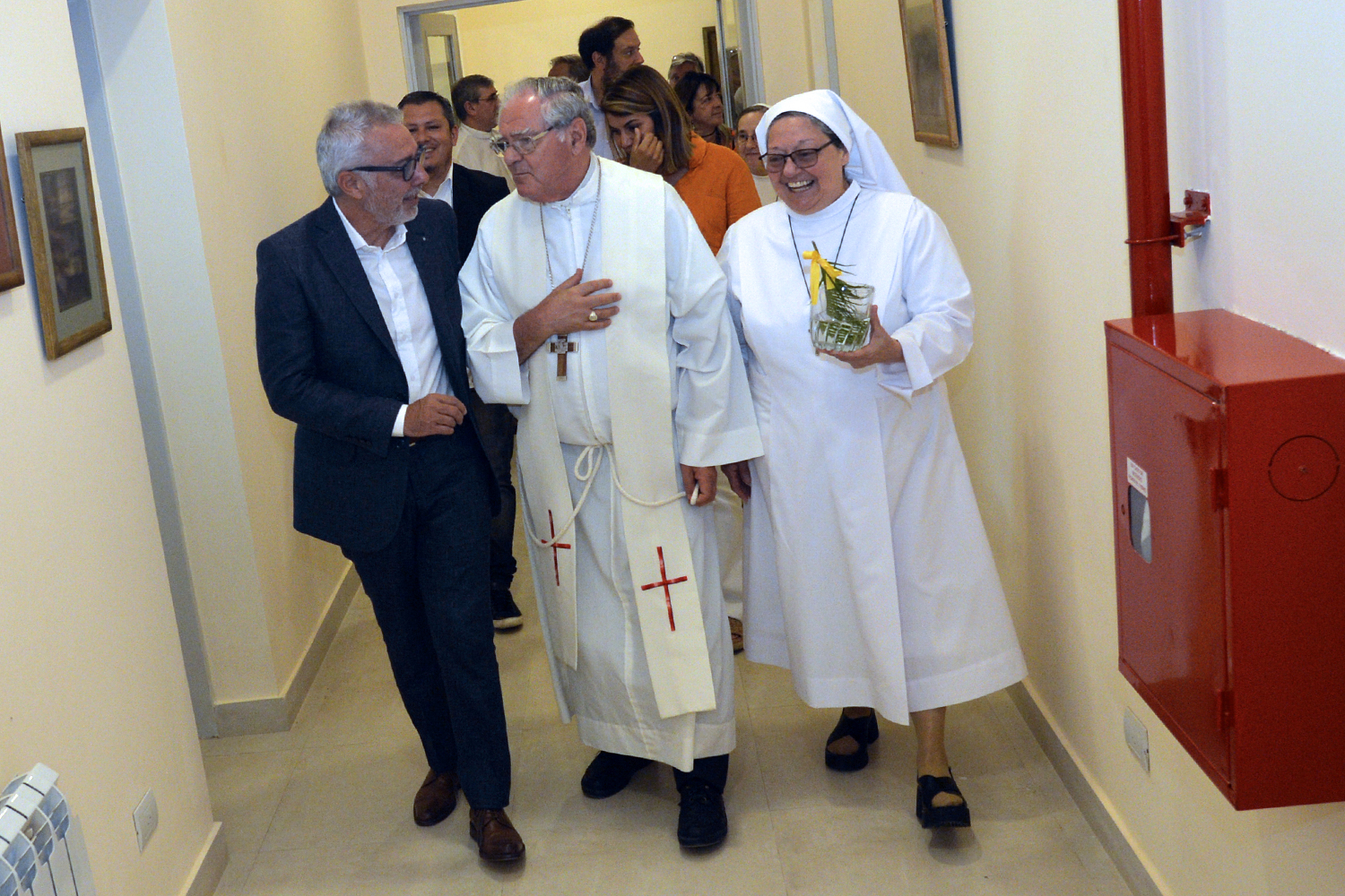 Los presentes recorrieron las instalaciones del edificio que cuenta con una planta baja con servicios de cocina, lavadero, oficinas, un oratorio, una sala de recepción de visitas y más. El primer piso se acondicionó para el desarrollo de diversas actividades como tejido, pintura, telar, educación física, entre otras. Además, dispone de un SUM y un consultorio odontológico. Por otro lado, el segundo piso se equipó para albergar a las mujeres que requieren más cuidados específicos, mientras que el tercero está destinado a las personas más autoválidas.