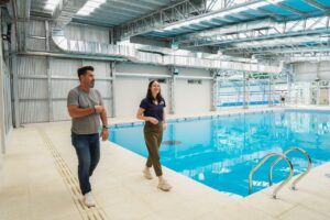 Soledad Martínez, intendenta de Vicente López, recorrió la finalización de la obra de los natatorios junto a Fabián Turnes, Secretario de Deportes.