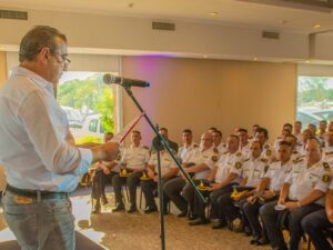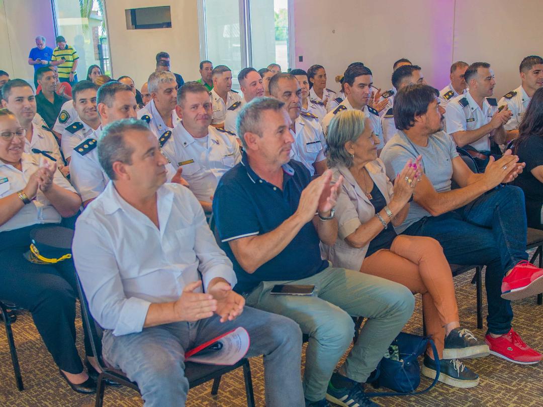 En representación del Intendente Juan Andreotti, los Secretarios de Protección Ciudadana, Néstor Pisetta y de Gobierno, Luis Freitas, el Secretario de Deportes, Carlos Traverso, el Secretario de Salud, Marcelo Campos, junto a otros funcionarios municipales y concejales, encabezaron el encuentro donde se entregaron a los policías diplomas y velas simbólicas de la ciudad como reconocimiento por el esfuerzo y el trabajo realizado durante 2022.