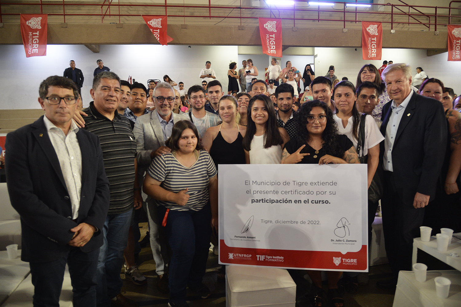 El intendente Julio Zamora entregó certificados a vecinos y vecinas por realizar las formaciones del programa Tigre Instituto Formativo (TIF). El Municipio durante el 2022 brindó más de 130 cursos gratuitos a personas de entre 18 a 65 años, con el objetivo de acercarles herramientas que fomenten su inserción en el mercado laboral.