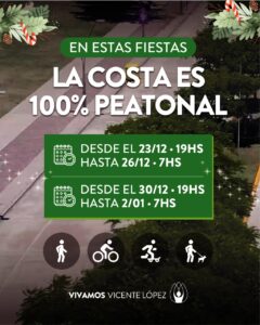 Durante las fiestas, el Paseo de la Costa estará habilitado únicamente para la circulación peatonal.
