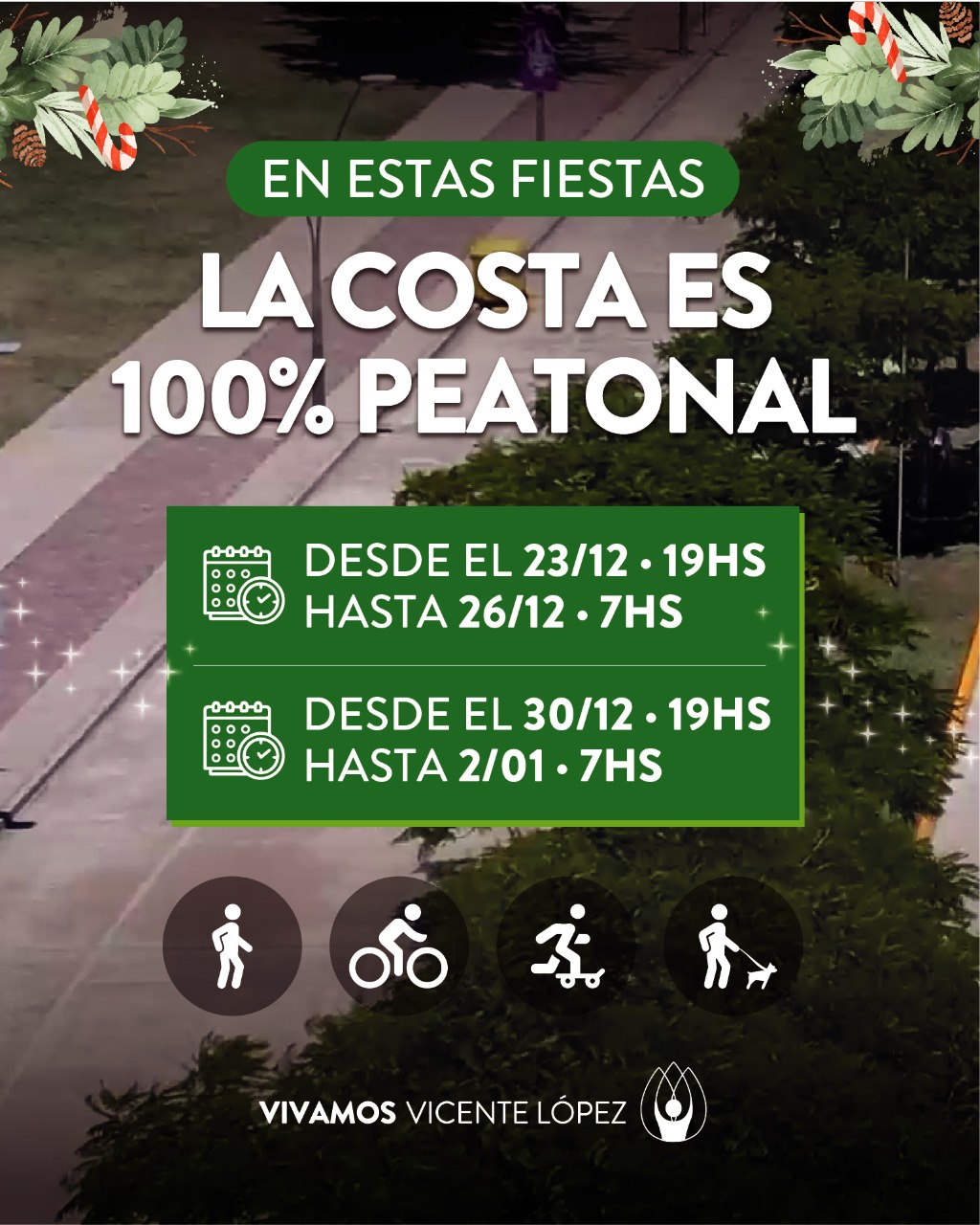 De esta manera, los vecinos podrán acercarse a la Costa a caminar al aire libre, andar en bicicleta o pasear con sus animales de compañía durante estas jornadas de celebración.