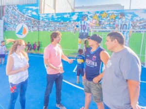 Además, estuvieron presentes en la inauguración la Secretaria de Obras Públicas Cecilia Tucat; la Directora de Obras Públicas Isabel Dumas; el Presidente del Concejo Deliberante Santiago Aparicio, concejales y funcionarios, junto a los vecinos y los chicos de la escuela que estrenaron la cancha.