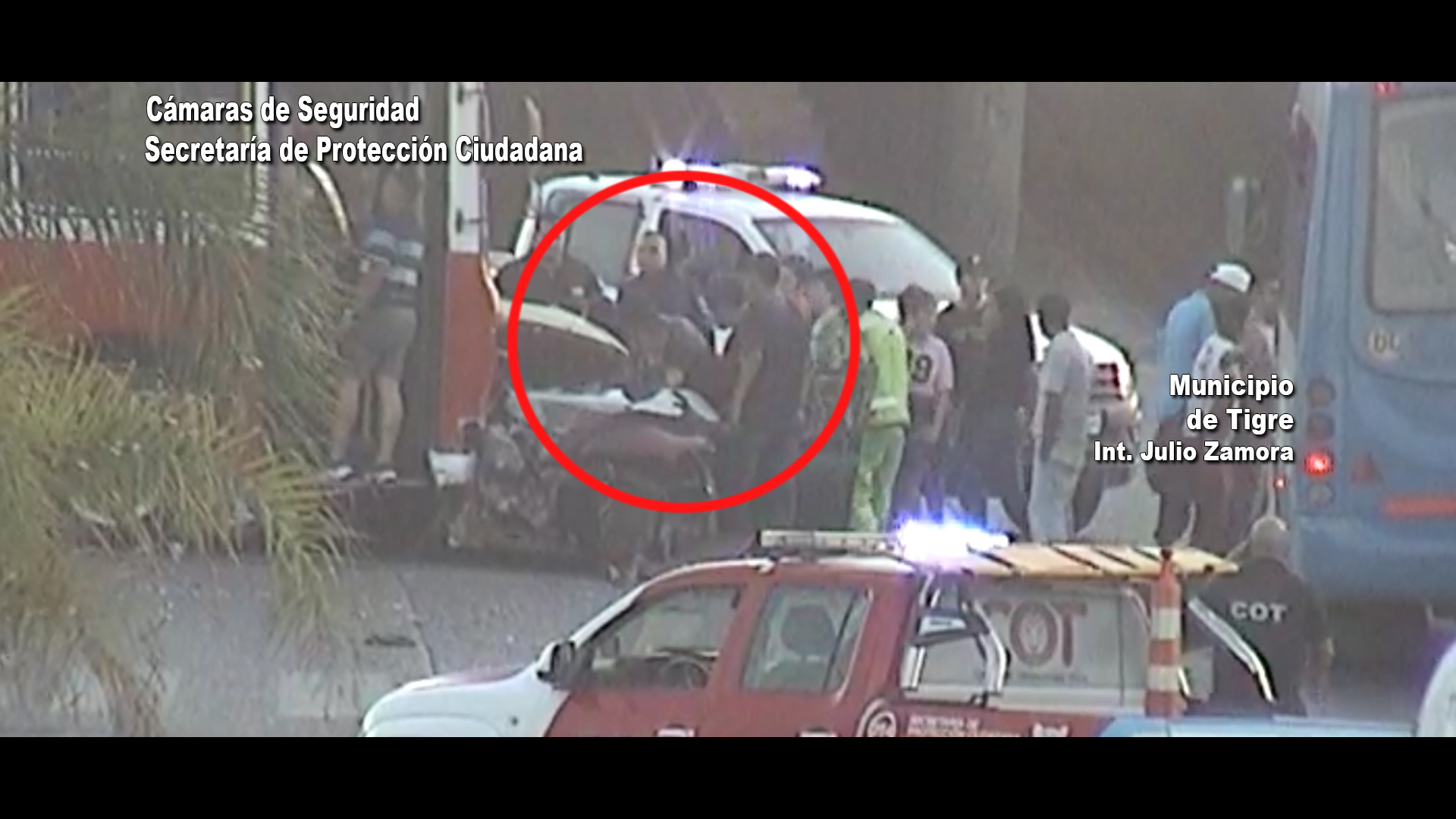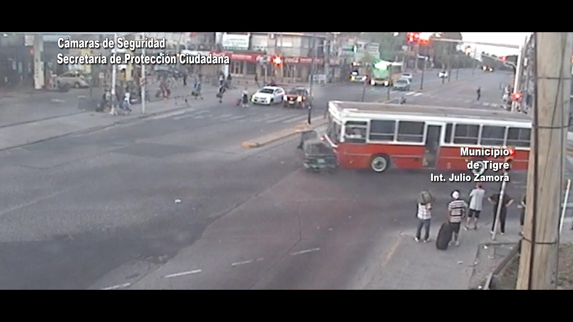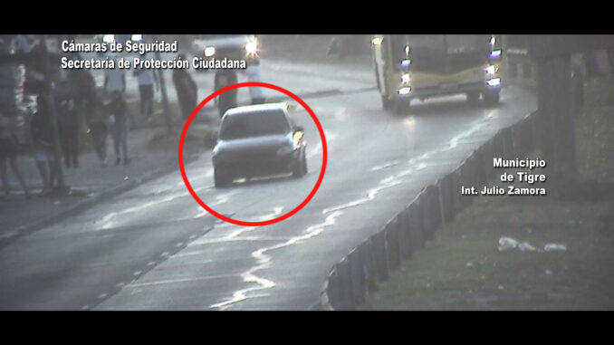 Las imágenes muestran, en un primer momento, al rodado cuando circulaba por Colectora de Panamericana: allí se puede ver al conductor realizar maniobras imprudentes. Al instante, se lo ve cuando cruza en rojo el semáforo emplazado en Ruta 197 y Colectora. El micro que venía por esta última arteria, lo impacta de costado.