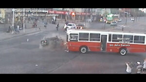 Las cámaras del Centro de Operaciones Tigre captaron un impactante accidente entre un automóvil y un micro en El Talar. El conductor del vehículo cruzó el semáforo en rojo y al momento de realizarle el test de alcoholemia se constató que tenía 0,6 g/l de alcohol en sangre.