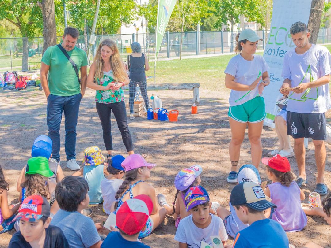 Los Secretarios municipales Eva Andreotti y Carlos Traverso acompañaron esta actividad relativa al programa municipal “EcoSanfer” para potenciar acciones ambientales, dirigida en este caso a los pequeños colonos que disfrutan el verano en los Polideportivos.