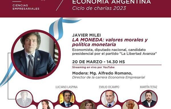 En el marco del Ciclo de Charlas de Economía, que organiza la Facultad de Ciencias Empresariales de la Universidad Austral, el economista Javier Milei, líder del espacio político La Libertad Avanza, se presentará vía streaming desde la Universidad Austral, el próximo lunes 20 a las 14H. El evento será moderado por el director de la carrera de Economía Empresarial, Mag. Alfredo Romano.