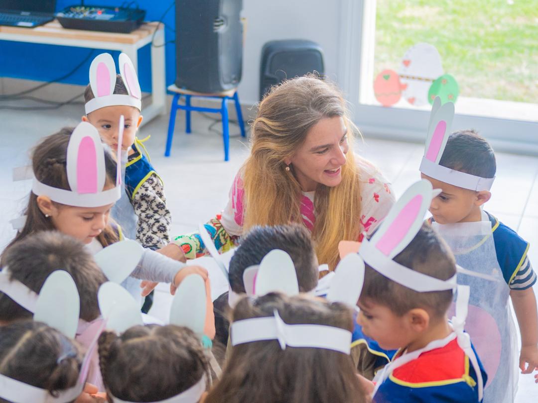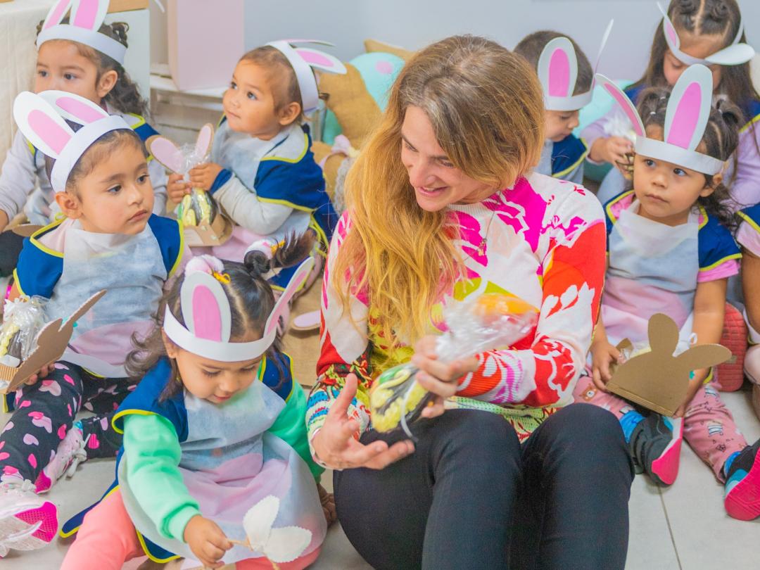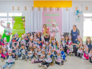 Eva Andreotti expresó: “Estamos festejando las Pascuas en todos nuestros Centros Educativos; en la Escuela de Oficios, los CEIM cocinaron galletitas, hicieron huevos de Pascua y los estuvieron decorando; los más chiquitos recibieron al Conejo de Pascua, buscamos los huevos por los juegos del Jardín Maternal, los encontramos, llenamos el canasto y nos divertimos mucho bailando con el Conejo”.