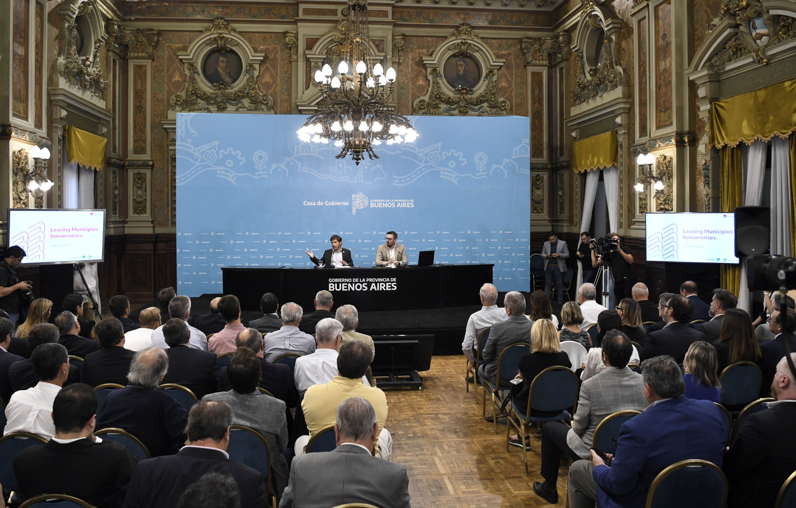 El gobernador de la provincia de Buenos Aires, Axel Kicillof, encabezó esta tarde junto al presidente del Banco Provincia, Juan Cuattromo, el acto de presentación de la cuarta edición de la línea de Provincia Leasing diseñada para los municipios bonaerenses, que asciende a $6.000 millones para el financiamiento de bienes que permitan reforzar sus servicios de obras públicas, salud y seguridad, entre otros.