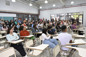 El evento comenzó con las palabras de la jefa de inspección de la Región 6, Amelia Bressan y del intendente Julio Zamora. Luego, dos profesoras del ISFDyT N° 117 cantaron canciones para el disfrute de las y los presentes. El encuentro finalizó con el testimonio de Agustina Almirón, estudiante del Profesorado de Educación Secundaria en Matemática y miembro del CAI.