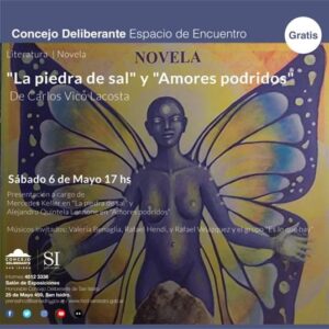 La presentación de la novela “La piedra de sal” estará a cargo de Mercedes Keller mientras que la presentación de la novela “Amores podridos” la llevará adelante Alejandro Quintela Iannone.