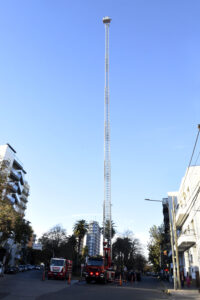Durante el encuentro, el intendente mencionó que la compra de la escalera de 55 metros fue consecuencia del siniestro que sufrió en el 2022 un complejo de edificios ubicado detrás de la estación de trenes. Además, destacó la importancia de actualizar las herramientas de los bomberos ante el desarrollo del distrito.