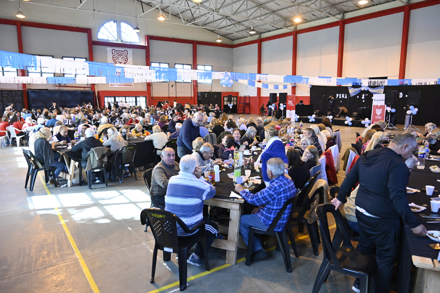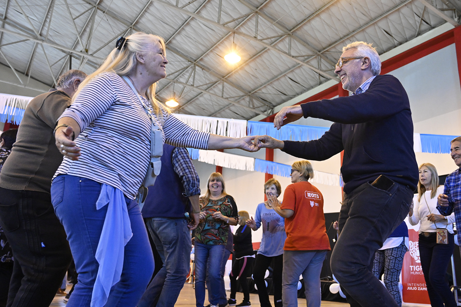 En el Polideportivo N°6 Mariano Moreno, el intendente de Tigre, Julio Zamora, compartió un encuentro festivo con adultos mayores de distintos polideportivos del distrito. Durante la jornada, el intendente recorrió las mesas, charló con los presentes y compartió los shows musicales.