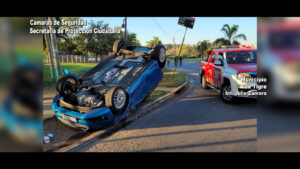 Las cámaras del Municipio de Tigre captaron un impactante choque y vuelco en General Pacheco. El Sistema de Protección Ciudadana actuó rápidamente para asistir a la víctima.