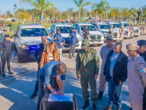 El Intendente Juan Andreotti entregó a la Secretaria de Seguridad de la Nación, Mercedes La Gioiosa, 7 patrullas para reforzar la prevención en la ciudad con agentes de Policía Federal, Gendarmería, Prefectura y Policía Aeroportuaria que ya trabajan en San Fernando. “Este esfuerzo para seguir cuidando a nuestras vecinas y vecinos es para el bienestar de las familias sanfernandinas; por eso quiero agradecer al Ministro de Seguridad, Aníbal Fernández”, destacó el Jefe Comunal.