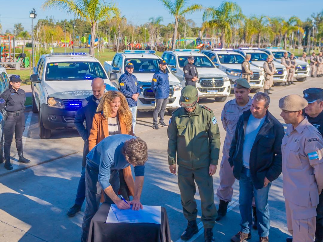 Mediante un convenio celebrado con el Ministerio de Seguridad de la Nación, el Intendente Juan Andreotti entregó al Comando Unificado del Conurbano (CUC) 5 Toyota Hilux, una Amarok y una Ecosport,para realizar patrullajes de prevención y operativos de seguridad en el distrito. Los vehículos fueron entregados a las fuerzas en un acto realizado en el Parque del Bicentenario.