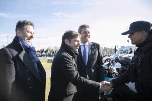 Asimismo, Massa hizo hincapié en que “cada peso que invertimos en la Policía para sumar equipamiento, móviles y logística, es un peso invertido para cuidar la vida de nuestro pueblo”. “Desde el Gobierno Nacional vamos a invertir $13.129 millones más para reforzar la seguridad en la provincia de Buenos Aires con más móviles, cámaras y tecnología”, manifestó.