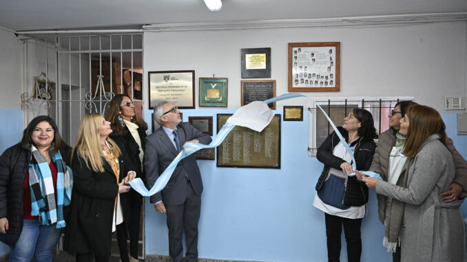 Al final de la celebración, el intendente y autoridades de la escuela descubrieron una placa en conmemoración a la fecha y otra en carácter de agradecimiento por su compromiso con la educación. Tras el cierre formal del acto, el jefe comunal recorrió una muestra fotográfica con la historia de la institución.