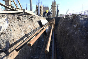 En el lugar, se llevan a cabo labores de excavación, que se encuentran en el tramo final, y armado de los pilotes. Además, se avanza en la construcción de vigas principales, columnas y la estructura de hormigón del futuro hospital.