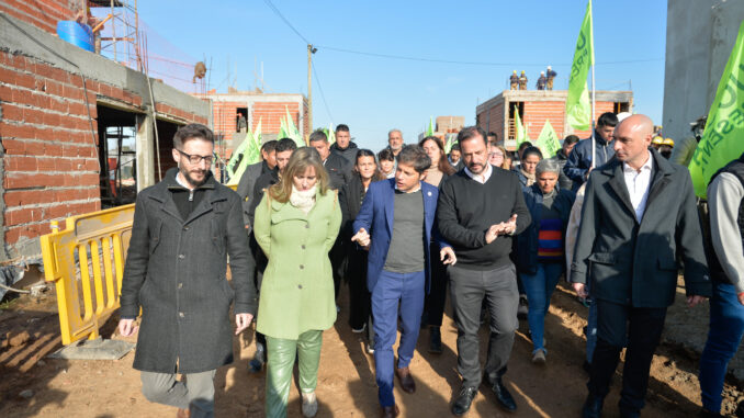 El gobernador de la provincia de Buenos Aires, Axel Kicillof, visitó esta mañana el municipio de Escobar, donde junto al intendente local, Ariel Sujarchuk, recorrió los avances de obras de infraestructura que se llevan adelante para la construcción de viviendas, un jardín de infantes y un Centro de Actividades Múltiples.