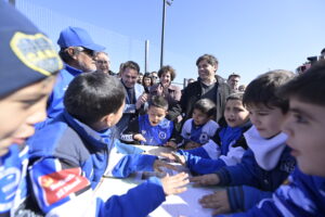 Asimismo, Kicillof recorrió los avances de las obras de construcción de un playón deportivo ubicado en un terreno lindante a la Unidad Penitenciaria N°39, en el barrio San Alberto. Tiene por objetivo brindar un espacio de participación deportiva con una mirada social para los chicos y chicas de la zona y también de clubes, asociaciones civiles y estudiantes de la Escuela Media N° 7 y del Jardín de Infantes N° 907.