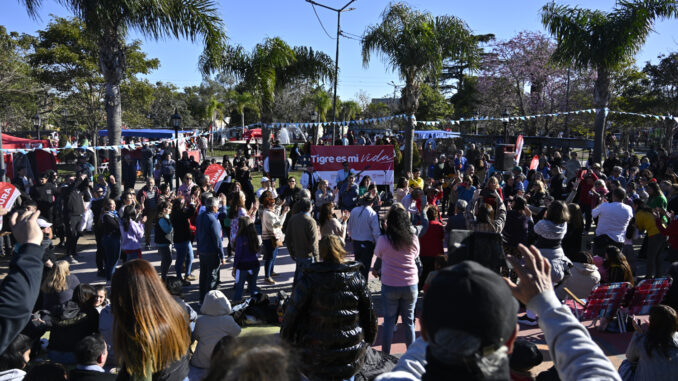 En la Plaza San Martín, la gestión local realizó el festival itinerante donde las familias disfrutaron de bailes y bandas de folclore locales. También, se desplegó la feria Origen Tigre y el stand de Alerta Tigre.