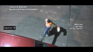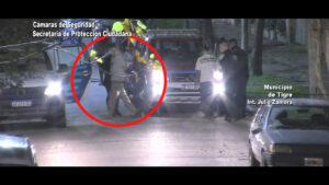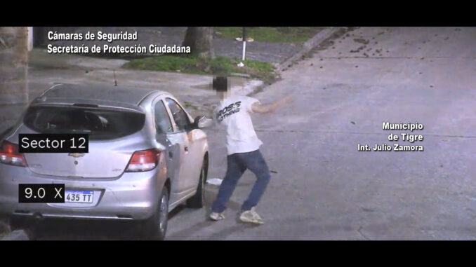 Todo comenzó cuando los operadores del centro de monitoreo visualizaron a los sospechosos en la intersección de Mitre y Madero. En las imágenes se puede ver a ambos jóvenes en estado de ebriedad, golpeando y rompiendo los autos que se encontraban estacionados en la calle.