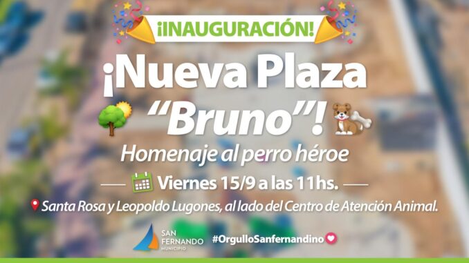 Mañana en Victoria se inaugurará una plaza para pasar el rato en familia, jugar y pasear con mascotas. El lugar llevará el nombre “Bruno” en honor a un perro héroe que intervino en importantes operativos de rastreo y búsqueda de personas en San Fernando y distintos puntos del país.