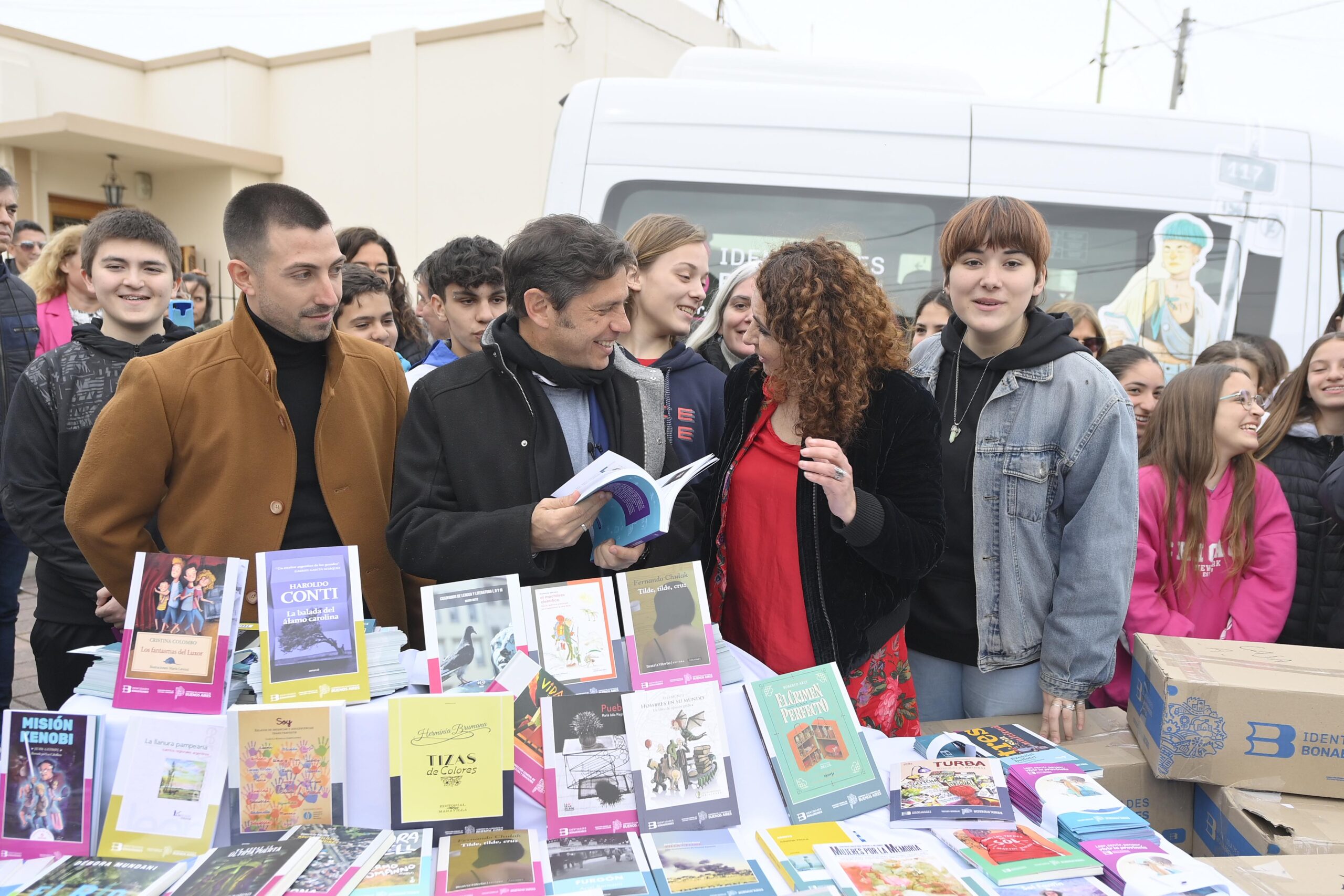 Durante la jornada, Kicillof y el director general de Cultura y Educación, Alberto Sileoni, visitaron también la Escuela Secundaria Técnica Nº1, donde entregaron colecciones literarias del programa “Identidad Bonaerense” a instituciones educativas de la región.