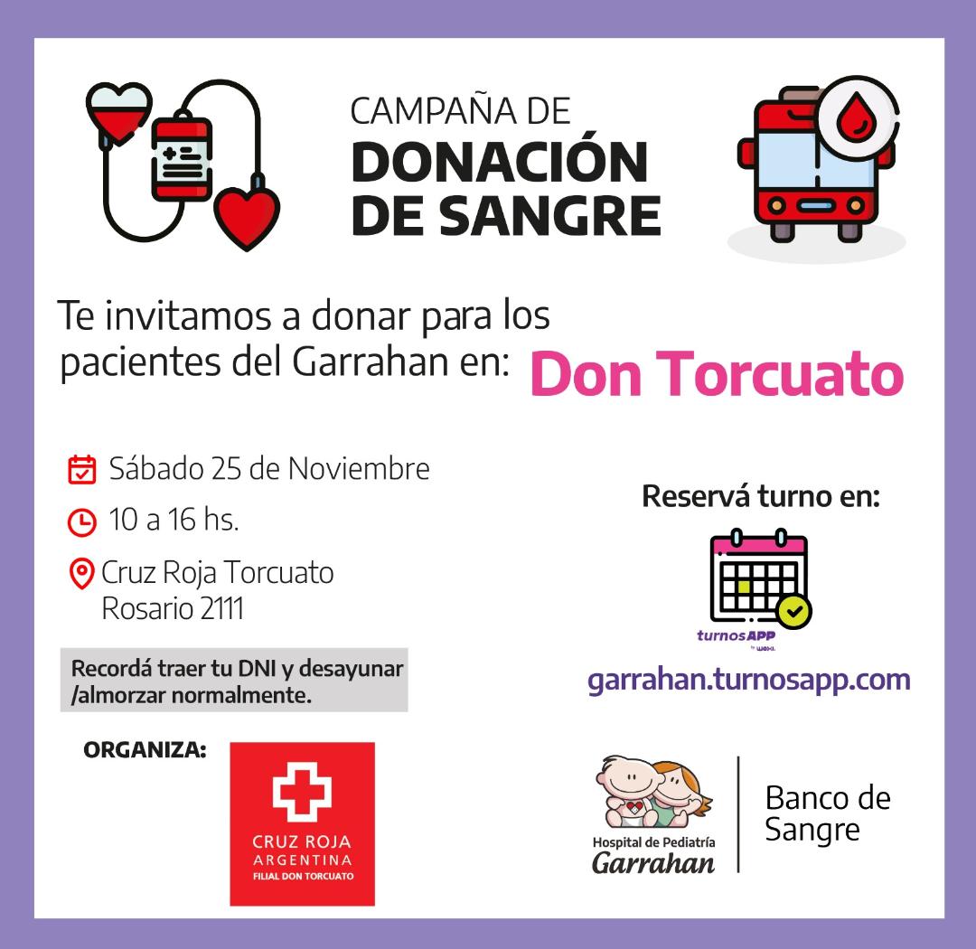 El objetivo de la campaña es que cualquier persona que desee donar y esté en condiciones de hacerlo pueda reservar su turno en garrahan.turnosapp.com allí ingresan sus datos, seleccionan la colecta «Cruz Roja Torcuato», eligen el día y la hora y les llega la confirmación al mail. Pueden leer todos los requisitos necesarios para donar en: https://www.garrahan.gov.ar/ser-donante