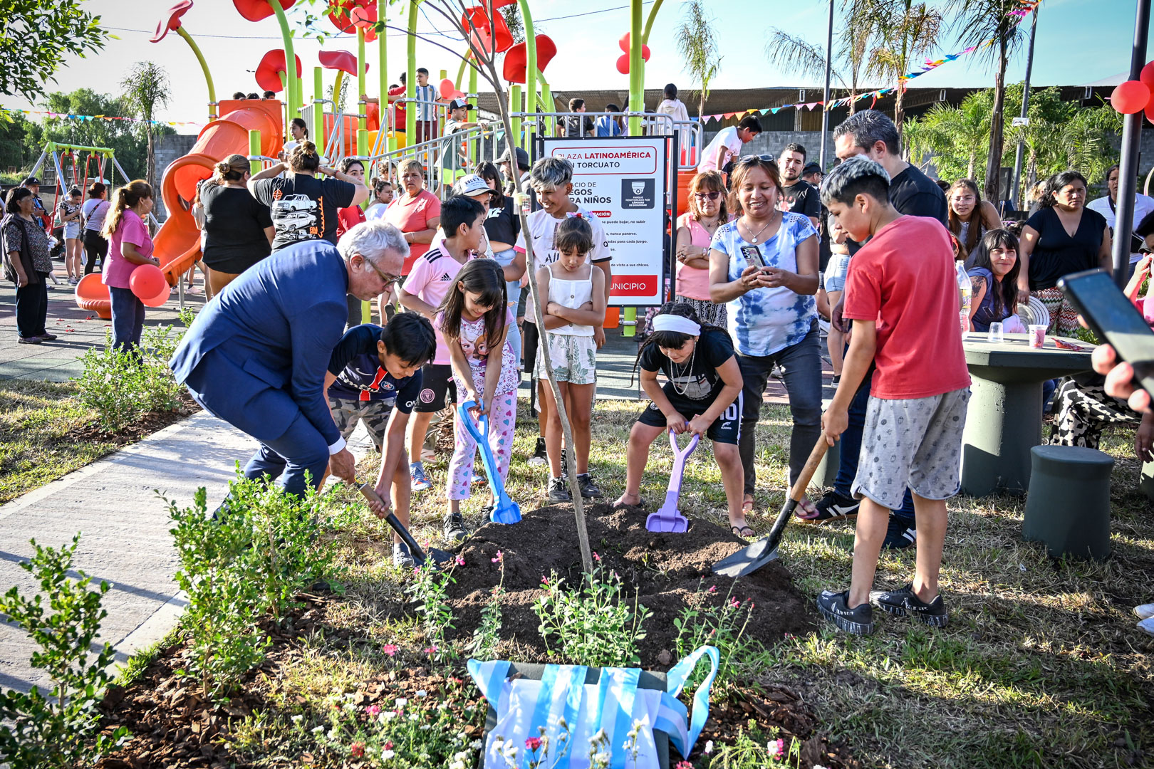 Junto a la comunidad de Don Torcuato, el intendente de Tigre, Julio Zamora, encabezó el acto de inauguración de la Plaza Latinoamérica ubicada en el barrio Basualdo. Se trata del 96° espacio público renovado por el Municipio, que cuenta con mobiliario urbano, canchas de ping-pong, fútbol tenis, fútbol, juegos infantiles, parquización, iluminación LED y sectores aeróbicos.