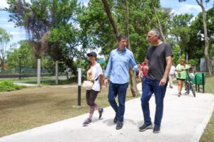 Luego, el jefe comunal recorrió el nuevo tramo de la senda aeróbica en Alvear y el río, en la localidad de Martínez. Cerca de una hectárea de verde con un camino de 400 metros lineales de ancho para caminar, trotar o andar en bicicleta.