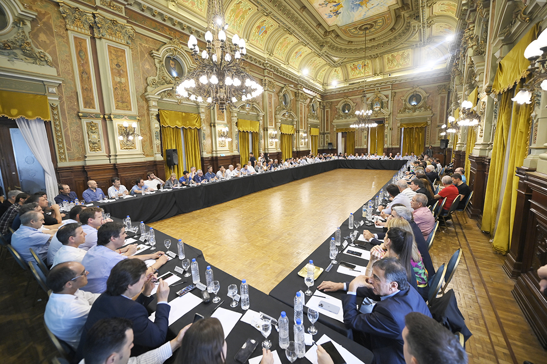 El gobernador Axel Kicillof se reunió esta tarde en Casa de Gobierno con intendentes, legisladores nacionales, funcionarios y representantes de Unión por la Patria para analizar la situación económica y las últimas decisiones del Gobierno Nacional.