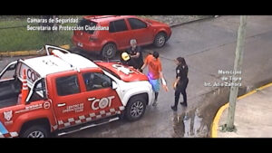 Todo comenzó cuando los operadores del centro de monitoreo visualizaron a ambas personas con actitud sospechosa en la intersección de las calles Sarmiento y Graiño.