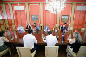 El gobernador de la provincia de Buenos Aires, Axel Kicillof, recibió este jueves junto al ministro de Salud, Nicolás Kreplak, a representantes nacionales y provinciales del sector farmacéutico para evaluar el impacto del DNU 70/2023 y las consecuencias que tendría la aprobación de las medidas que impulsa el Gobierno Nacional.