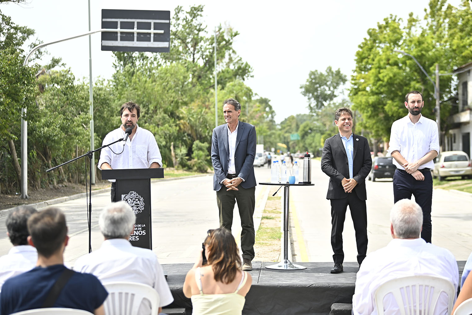 Estuvieron presentes los intendentes de Morón, Lucas Ghi; de Ituzaingó, Pablo Descalzo; de Luján, Leonardo Boto; de Navarro, Facundo Diz; de Mercedes, Juan Ignacio Ustarroz; el diputado bonaerense Rubén Eslaiman; y el rector de la Universidad Nacional de Hurlingham, Jaime Perczyk.