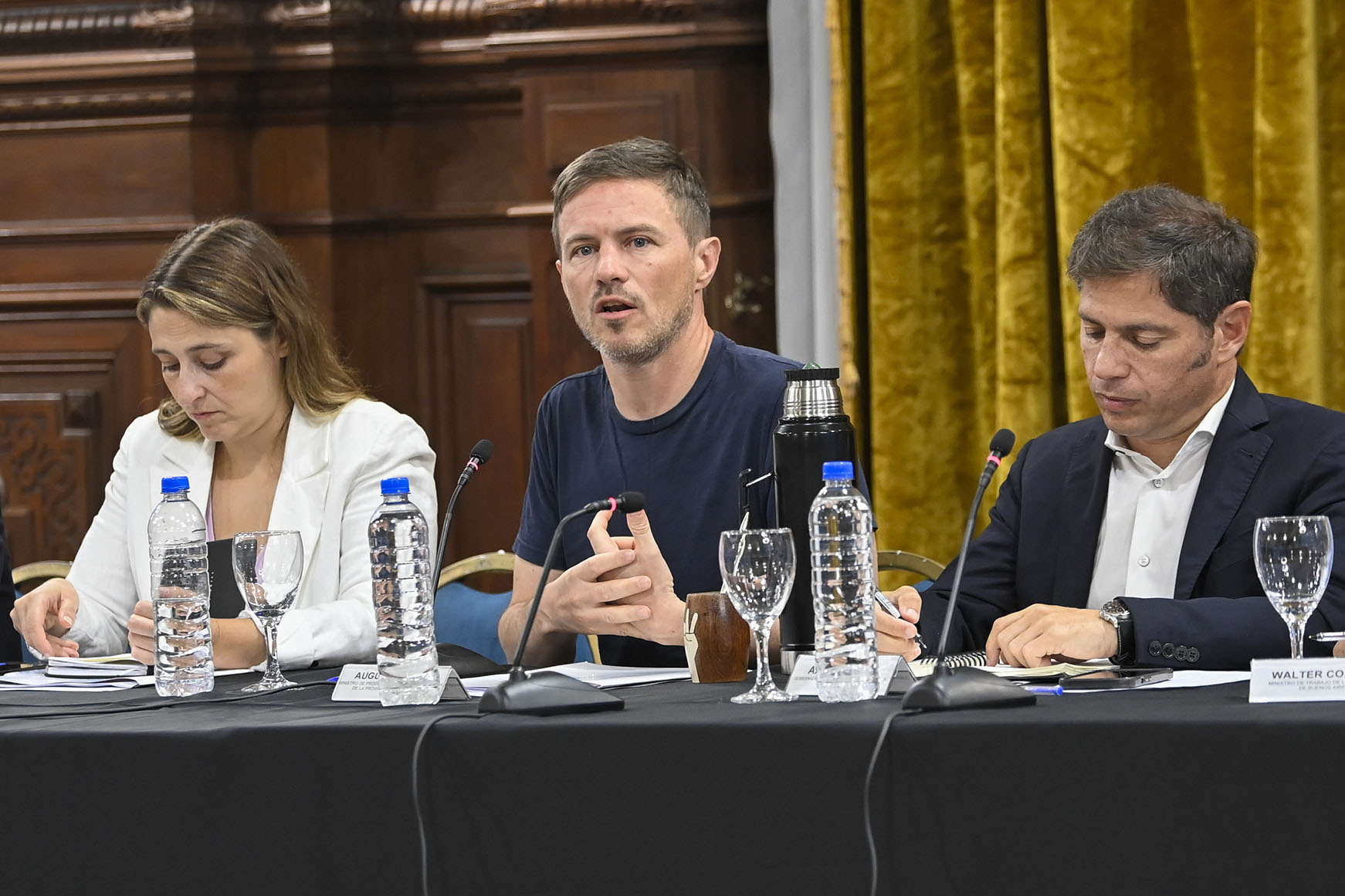 El gobernador de la provincia de Buenos Aires, Axel Kicillof, se reunió este jueves junto con los ministros de Producción, Ciencia e Innovación Tecnológica, Augusto Costa, y de Trabajo, Walter Correa, con representantes de trabajadores y empresarios de las industrias textil y del cuero para evaluar el impacto de las medidas del Gobierno nacional en la actividad.