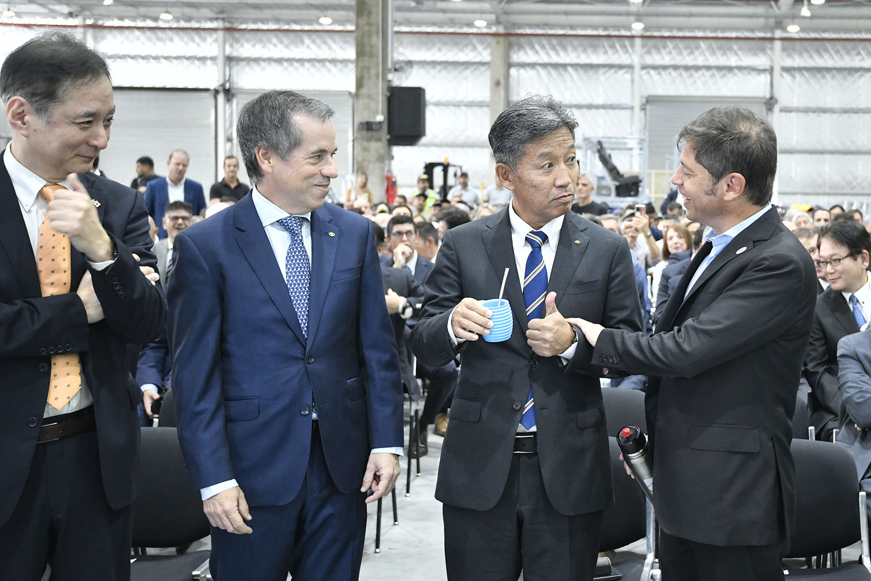 El gobernador de la provincia de Buenos Aires, Axel Kicillof, participó este viernes en Zárate de la puesta en funcionamiento de la nave industrial en la que Toyota comenzará a producir el utilitario Hiace. Estuvieron presentes el ministro de Producción, Ciencia e Innovación Tecnológica, Augusto Costa; el embajador de Japón, Yamauchi Hiroshi; el presidente de Toyota Argentina, Gustavo Salinas; el CEO de la empresa para América Latina y el Caribe, Masahiro Inoue; el jefe de Ingeniería de Hiace, Hideki Mizuma; y el intendente local, Marcelo Matzkin.