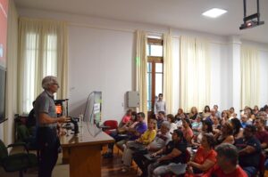 El decano mencionó las diferentes acciones que lleva adelante la Facultad para articular con los colegios secundarios y acercar a los jóvenes a la Universidad. “Piensen que, si yo tendría que cobrarles a los 6.500 chicos que están cursando, que no lo haría ni loco porque voy a pelear hasta el último momento por la educación gratuita, deberíamos estar pensando en una cuota mínima de 200.000 pesos por mes”, estimó.