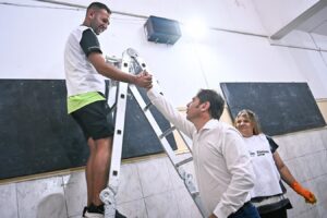 El gobernador de la provincia de Buenos Aires, Axel Kicillof, visitó esta mañana la Escuela Primaria N°6 de San Martín, donde junto al ministro de Infraestructura y Servicios Públicos, Gabriel Katopodis, y el intendente local, Fernando Moreira, compartió una mateada con la comunidad educativa y las y los voluntarios que participan de jornadas solidarias para la puesta a punto de las escuelas antes del inicio del ciclo lectivo.