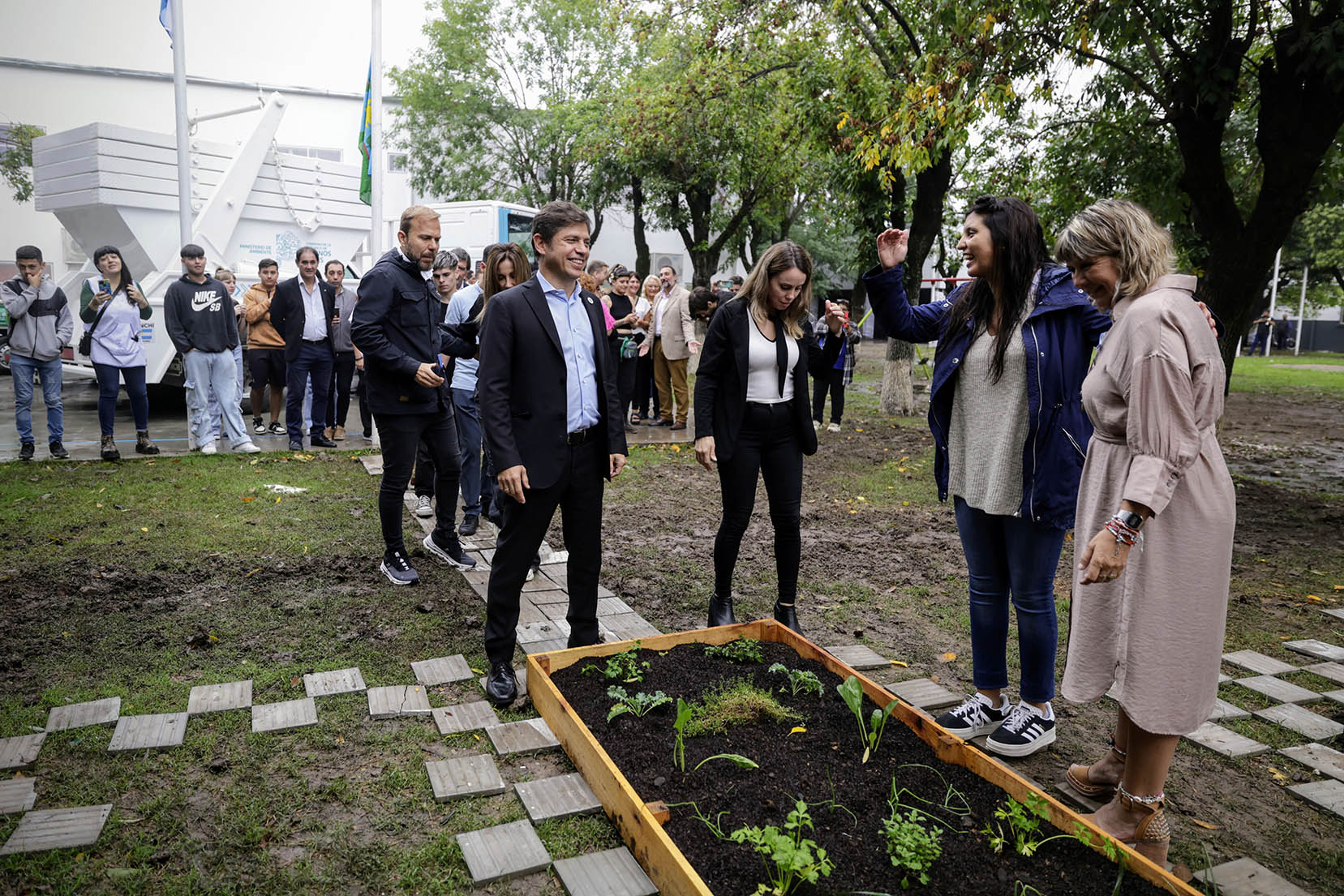 Además, Kicillof y la ministra de Ambiente, Daniela Vilar, entregaron insumos para la conformación de una huerta comunitaria dentro de la escuela secundaria y, en el marco del programa Mi Provincia Recicla, pusieron a disposición del municipio un camión de caja abierta, uno volquetero y uno furgón para fortalecer las tareas de logística en la gestión de residuos.