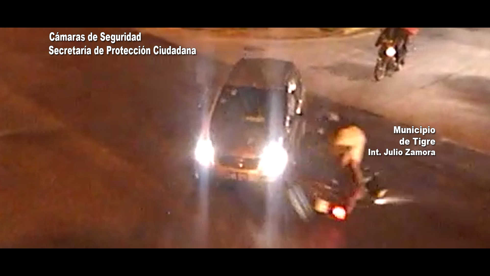 Todo comenzó cuando ambos vehículos cruzaban el semáforo ubicado entre Av. Boulogne Sur Mer y Av. Belgrano. En las imágenes se puede ver que el automóvil intenta girar a la izquierda, en el momento en el que la motocicleta cruzaba la avenida. Como consecuencia, el vehículo impactó contra el otro rodado.