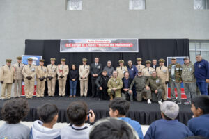 Para continuar la ceremonia, brindaron unas palabras el Prefecto Mayor, Osvaldo Aguirre, y la estudiante del establecimiento educativo Kiara Barreiro. Acto seguido, el intendente se dirigió a los presentes con un mensaje hacia los jóvenes sobre la importancia de recordar a los héroes de Malvinas.
