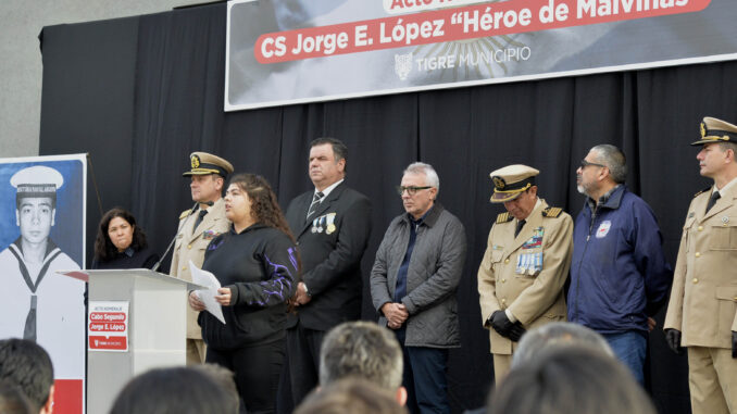 “Fue un día de muchos sentimientos encontrados. Rendimos un lindo homenaje a Jorge Eduardo López para recordarlo como un héroe que fue. Desde el Municipio de Tigre trabajamos todos los días para rememorar a los ex Combatientes, los que no están y los que sí. Se mencionó que apareció el cuerpo del Cabo y eso es una gran emoción. Las Islas Malvinas deben vivir en la memoria colectiva de toda la ciudad”, comentó la concejala Cecilia Ferreira.